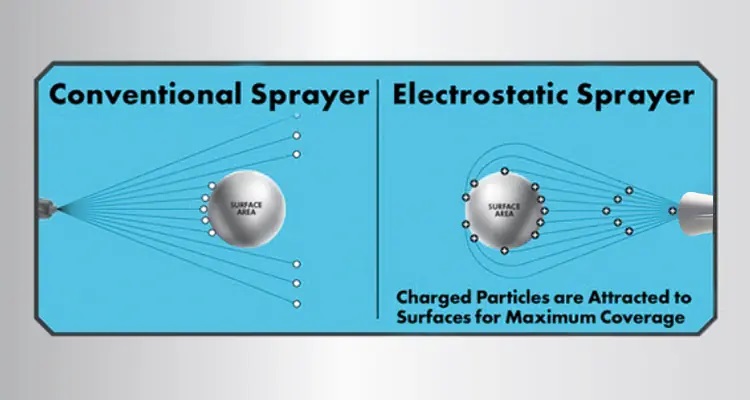 تکنولوژی اسپری الکترواستاتیک یک تکنولوژب پیشرفته است. وقتی مایع اسپری از نازل های الکترواستاتیک جریان می یابد، قطرات اسپری شده با حجم بالایی از بار الکترواستاتیک، به دلیل عمل ژنراتور الکترواستاتیک با ولتاژ بالا، شارژ می شوند. آن ها دارای عملکرد الکترواستاتیک قوی زیر اثر، به ویژه نشان داده شده با: